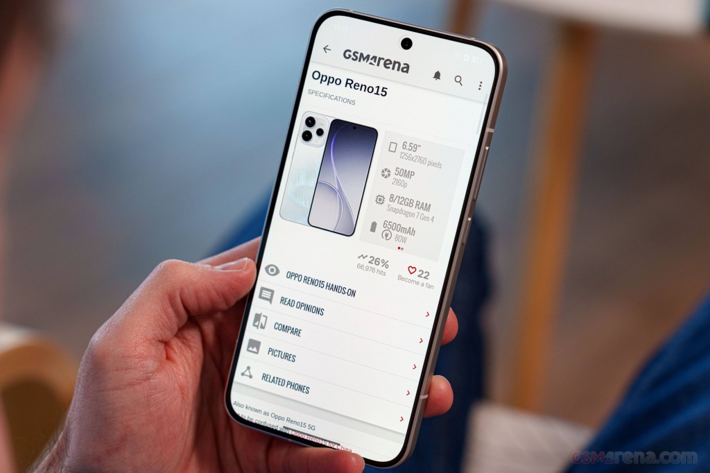 يعتمد Oppo Reno15 على معالج Qualcomm Snapdragon 7 Gen 4 المبني بتقنية تصنيع 4 نانومتر، وهو معالج ثماني النوى مجهز بتوزيع متقن للأنوية: نواة واحدة بتردد 2.8 غيغاهرتز Cortex-720، وأربع أنوية بتردد 2.4 غيغاهرتز Cortex-720، وثلاث أنوية بتردد 1.8 غيغاهرتز Cortex-520. هذا التوزيع يحقق توازناً ممتازاً بين الأداء العالي وكفاءة استهلاك الطاقة.